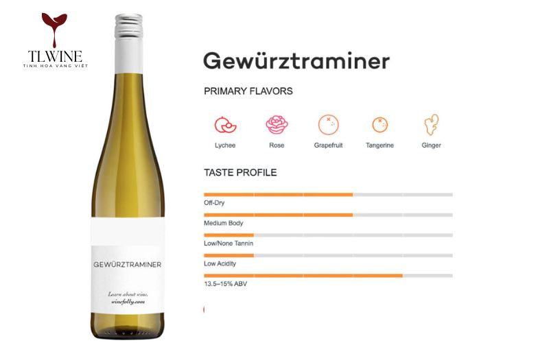 Gewürztraminer: Phù hợp món có gia vị, hương vị đặc trưng.