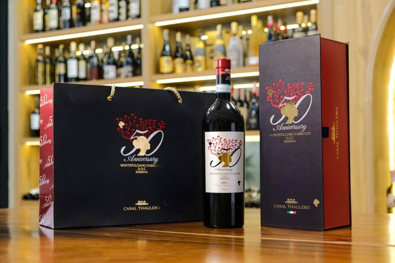 Casal Thaulero 50 Anniversary Montepulciano d'Abruzzo Riserva DOC là đỉnh cao phong cách vang đỏ Abruzzo – nơi sức mạnh, độ sâu và sự tinh tế cùng song hành. Hương cherry, cassis, thảo mộc và gỗ sồi thanh lịch hòa quyện trong cấu trúc đầy đặn, tạo nên một chai vang lý tưởng cho bữa tiệc sang trọng, dịp kỷ niệm quan trọng hoặc quà tặng cao cấp.