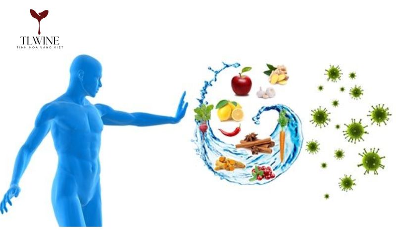 Rượu vang – đặc biệt là vang đỏ – chứa rất nhiều antioxidants như resveratrol, flavonoid và tannin. Những chất này giúp trung hòa gốc tự do, giảm nguy cơ tổn thương tế bào, hỗ trợ hệ miễn dịch và ngăn ngừa quá trình lão hóa từ bên trong.