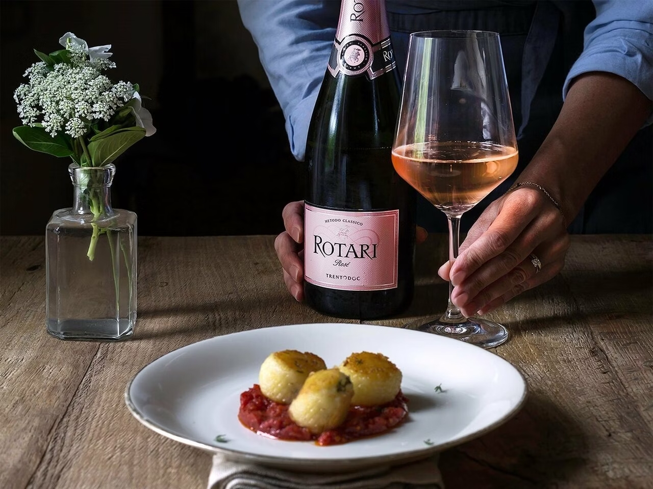 Rotari Brut Rosé Trento DOC là một chai vang sủi bọt hồng Trentino quyến rũ, nổi bật với hương dâu tây, táo, mật ong, cấu trúc creamy và bọt mịn chuẩn Metodo Classico. Phù hợp cho hải sản, món Việt nhẹ và các buổi tiệc thân mật, chai vang này thể hiện trọn vẹn tinh hoa vang sủi bọt vùng Alps nước Ý.
