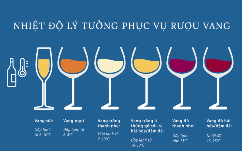 | Vang sủi (Sparkling Wine) | 6 – 10°C |